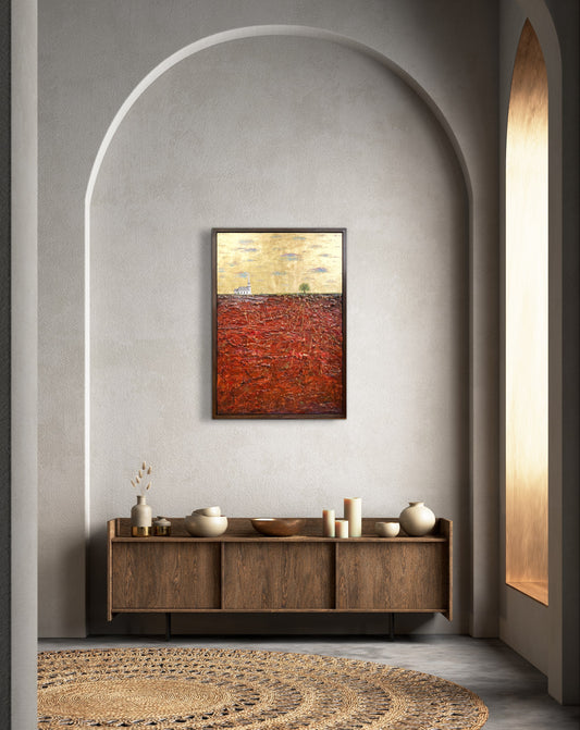 Beneath Our Brief Tread, 24x36" Wood Panel in handmade frame