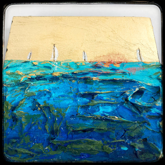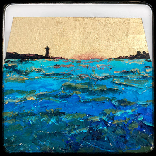 Between Two Shores. 9x12" Wood Panel in handmade frame