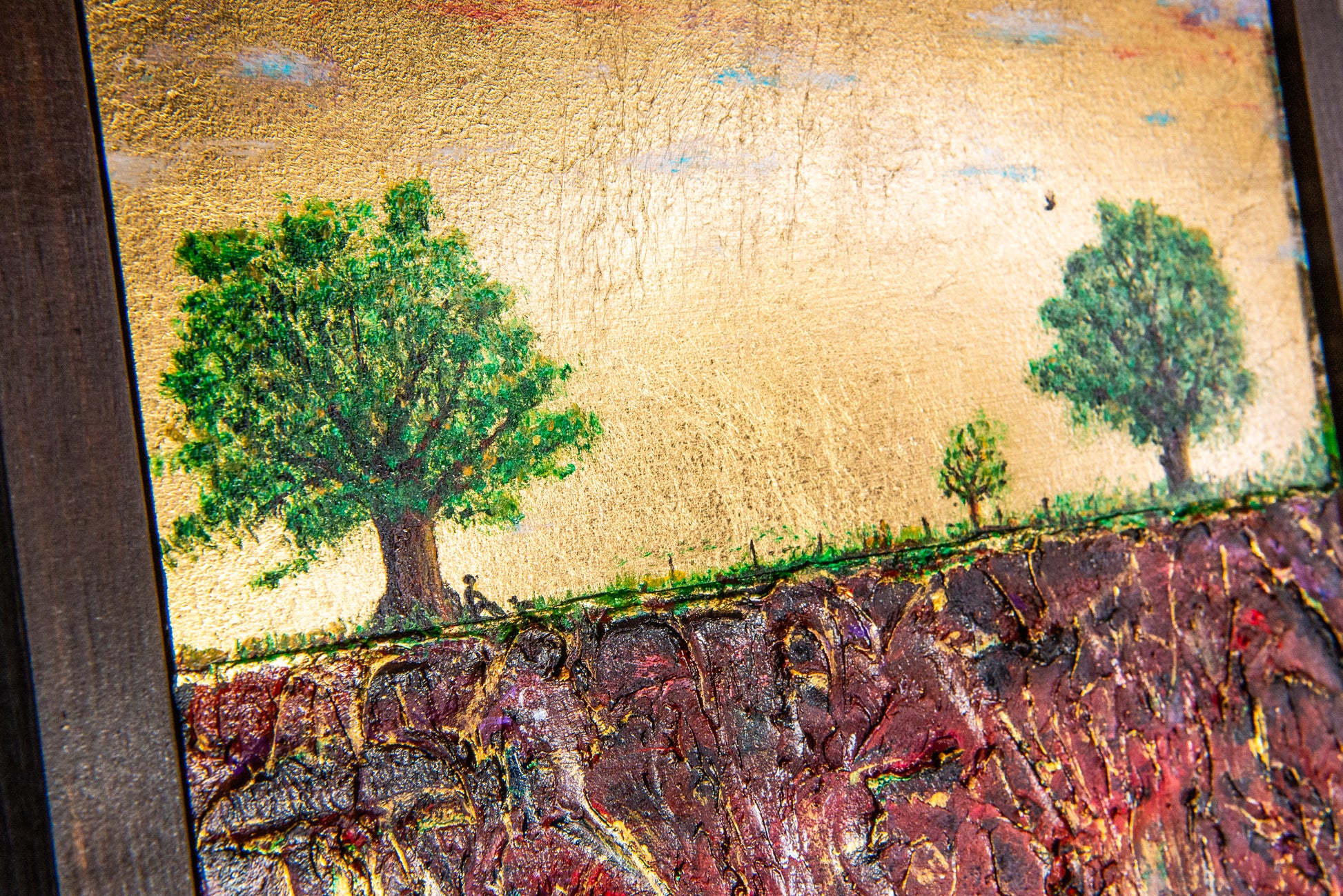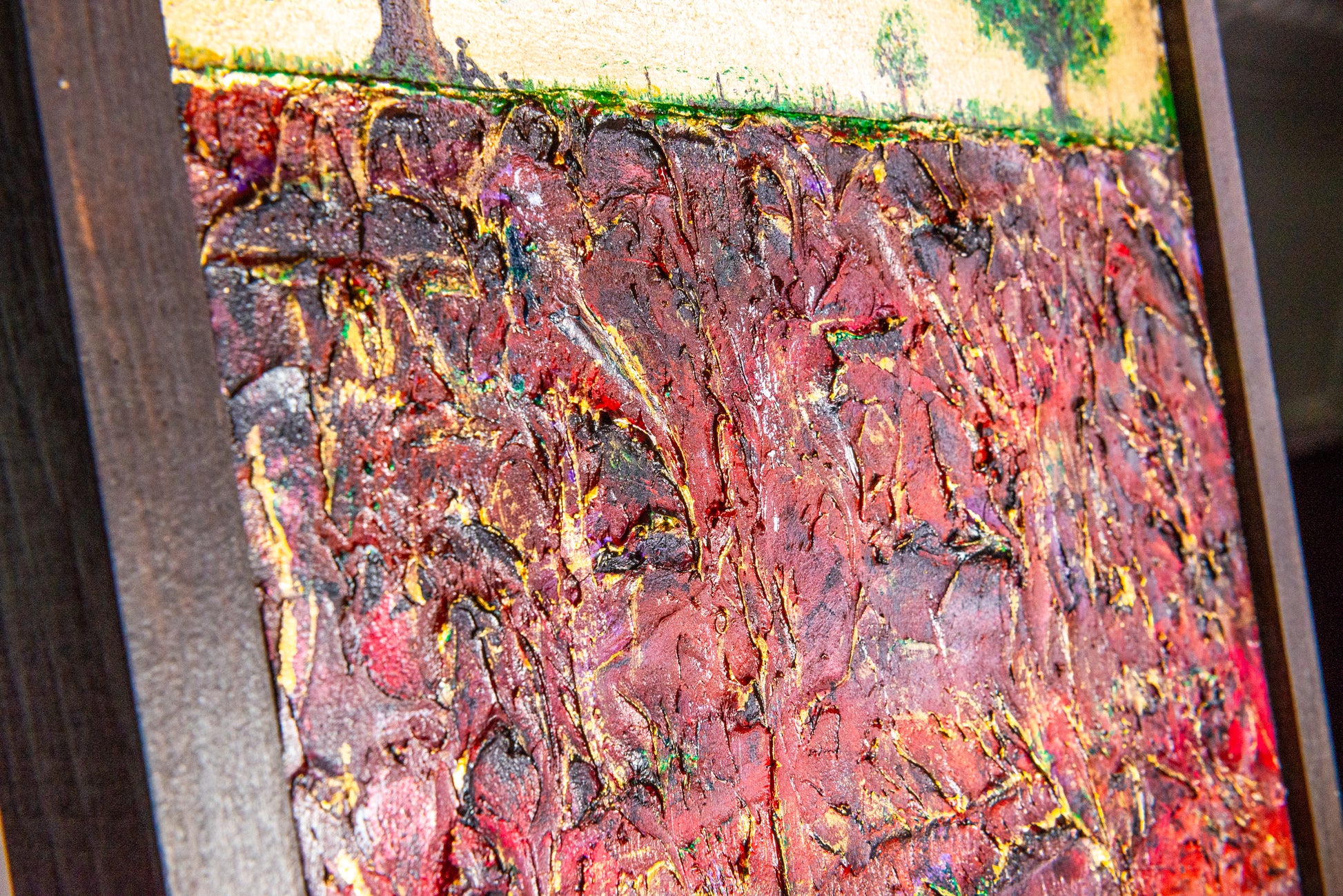 Impressionist landscape , mixed media painting. 24x36" panel in a handmade solid wood frame.