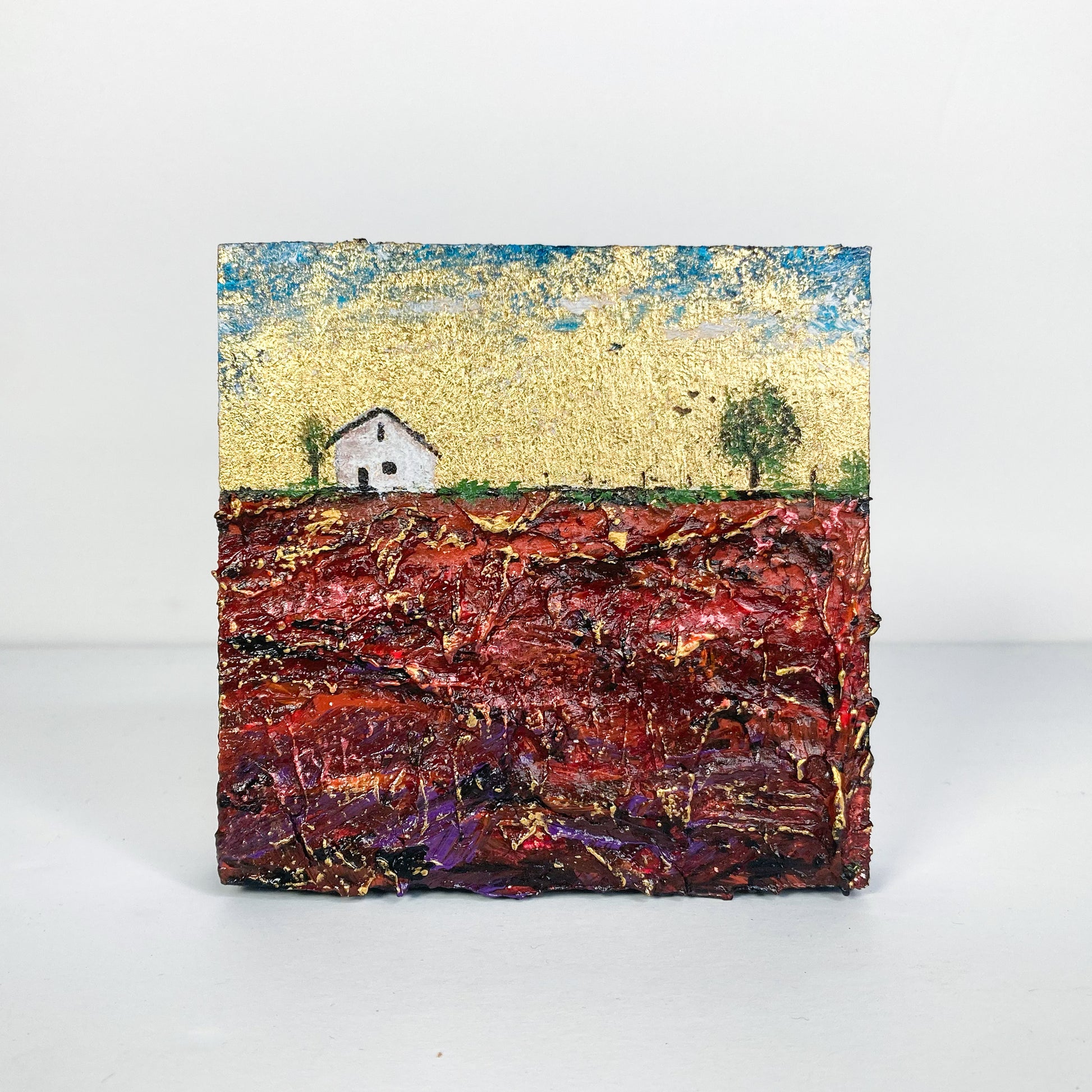 Free-standing, detailed mini version of my 'What Lies Beneath' series. The ideal introduction to the aesthetic of my larger works in this collection. With it's light-shifting, luminous, and textural elements, it's perfect to brighten a shelf or small space!